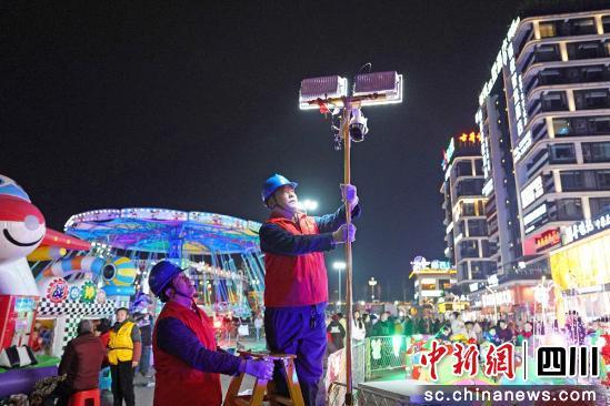 元宵期間,猜燈謎、花燈美食節(jié)、篝火音樂會、非遺民俗巡游等活動在眉山各地輪番上演,吸引了上萬市民前往觀看和參與!霸(jié)期間增加了巡視頻率,確保排查沒有遺漏!闭谌蕢凵虡I(yè)街區(qū)開展巡查服務(wù)的楊洪旗稱,與隊友夏雙健一起對商業(yè)街區(qū)廣場娛樂設(shè)施臨時用電線路開展巡視。同時,運維人員利用紅外測溫、無人機(jī)巡檢、“千里眼”集控系統(tǒng)等數(shù)字化手段,對轄區(qū)站、線開展立體式巡檢。并協(xié)助重點商業(yè)街區(qū)物業(yè)等對景觀亮化工程進(jìn)行地毯式摸排,為市民和游客提供多元化、高品質(zhì)的游玩體驗。