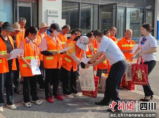 中新網(wǎng)四川新聞9月11日電 “您擦擦汗!天熱,喝點(diǎn)水歇會(huì)兒!”“謝謝小伙子!”環(huán)衛(wèi)工李大姐接過(guò)飲料,汗珠混著笑容滑落。八月,素有中國(guó)酒城之稱(chēng)的瀘州,午后路面溫度直逼40℃,建行四川省瀘州古藺支行“張富清金融服務(wù)隊(duì)”隊(duì)員們?yōu)榄h(huán)衛(wèi)工備上清涼,并開(kāi)展科普:“陌生鏈接別點(diǎn),謹(jǐn)防受騙……”