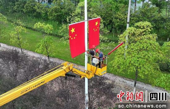 中新網(wǎng)四川新聞9月23日電(吳平華 陳欣 孫小紅)近日,資陽市樂至縣城區(qū)多條主干道路燈桿上,悄然掛起了一面面鮮艷的五星紅旗。醒目的“中國(guó)紅”成為城市中一道亮麗的風(fēng)景線,不僅為城市增添了濃厚的節(jié)日氛圍,更點(diǎn)燃了市民心中熾熱的愛國(guó)情懷。