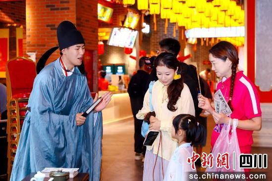 互動(dòng)體驗(yàn)環(huán)節(jié)特色鮮明。在東坡主題劇本殺中,身著宋代襕衫的NPC(非玩家角色)引導(dǎo)游客解謎,讓游客在互動(dòng)中解鎖東坡人生故事。雙節(jié)期間,現(xiàn)場(chǎng)特別設(shè)置抽獎(jiǎng)環(huán)節(jié),每日消費(fèi)游客均可參與,雙人餐秀套票、東坡文創(chuàng)禮盒等福利將持續(xù)放送。
