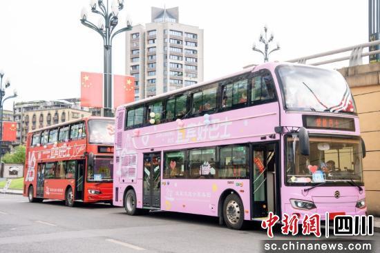 以粉色、紅色為主色調(diào)的愛情巴士,車身點(diǎn)綴長江波浪紋、愛心與鮮花元素,車內(nèi)循環(huán)播放著經(jīng)典愛情歌曲,從視覺到聽覺都營造出濃郁的甜蜜氛圍,沿途站點(diǎn)還為新人準(zhǔn)備了520地標(biāo)打卡、浪漫小提琴演奏、互動(dòng)小游戲等專屬浪漫體驗(yàn),車廂內(nèi)外滿是歡聲笑語!耙贿M(jìn)到愛情巴士就覺得特別溫馨,像是為我們量身打造的蜜月空間!毙氯税烬埿χf。新人劉江濤更是難掩激動(dòng)地表示:“今天剛領(lǐng)了結(jié)婚證就能參加這么有意義的活動(dòng),太幸運(yùn)了!每一站都有新驚喜,既能欣賞宜賓的美景,又能留下專屬我們的回憶,這趟蜜月之旅值了!”