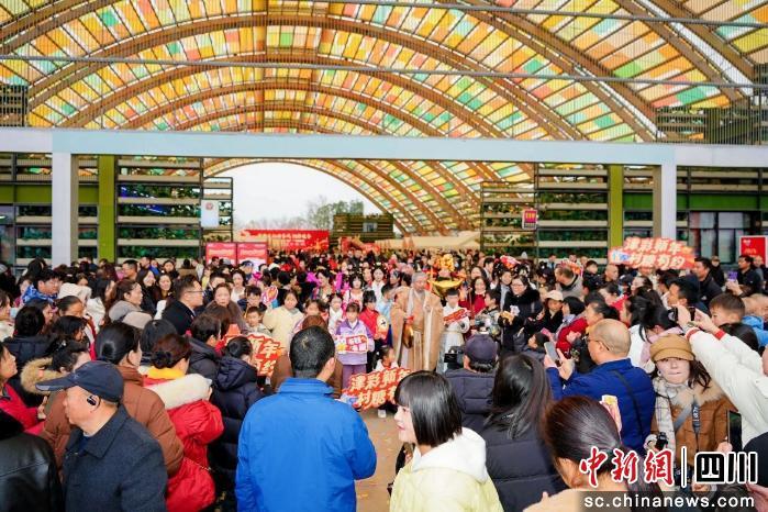 中新網(wǎng)四川新聞1月1日電 (湯雁)2026年的第一天,隨著“Duang”一聲銅鑼響,等候已久的人潮涌入成都天府農(nóng)博園G2館。腳步聲、歡呼聲、吆喝聲交織在一起,村糖會集市頃刻間被游客填滿,成都市新津區(qū)首屆“村糖會”暨天府農(nóng)博悅冬季正式開啟。