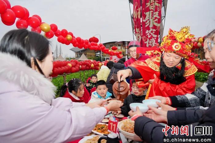 來自武侯區(qū)的周先生一家人說,他們特意預(yù)定了席位,就是為了來吃一頓正宗的壩壩宴:“在千畝田園里吃非遺壩壩宴,既有儀式感又接地氣,黃辣丁是現(xiàn)撈現(xiàn)做的,這才是新津的新年專屬味道!