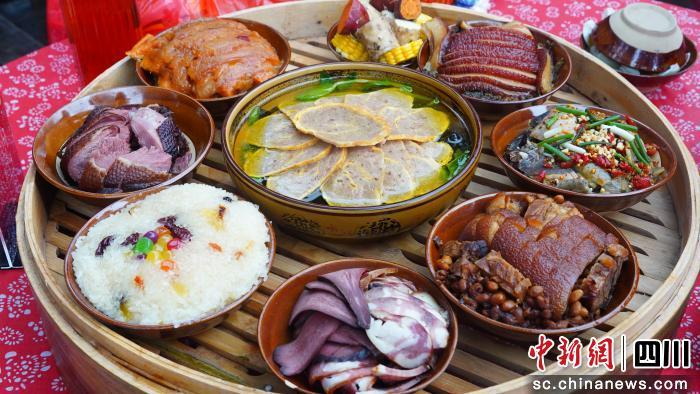時值正午,江安西街已化為一片熱鬧的露天宴廳。一眼望不到頭的八仙桌沿古街鋪開,每桌中央標志性的蒸籠高高摞起。隨著“開席咯!”的吆喝聲響起,籠蓋揭開,粉蒸肉的軟糯咸香、甜燒白的甘潤、夾沙肉的豐腴、川南第一碗的鮮嫩……九道經(jīng)典菜肴的香氣瞬間交織彌漫,構(gòu)成最誘人的年節(jié)圖景!昂枚嗄隂]吃過這么地道的‘九大碗’壩壩宴了。特別是這個‘香碗’,一下子就把我拉回了小時候跟著大人去吃席的場景。在西街這么有味道的老街上吃,感覺更特別了!笔忻聆牡强聘吲d地說道。