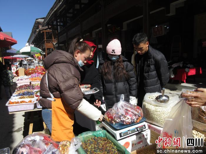 中新網(wǎng)四川新聞2月11日電 (張成亮)丙午馬年春節(jié)即將到來之際,千年松潘古城張燈結彩、暖意融融,以街為市的年貨市集人頭攢動,大紅燈籠沿街高掛,特色美食琳瑯滿目。藏、羌、回、漢各族民眾與八方游客歡聚一堂,處處洋溢著其樂融融、喜氣洋洋的節(jié)日氛圍。