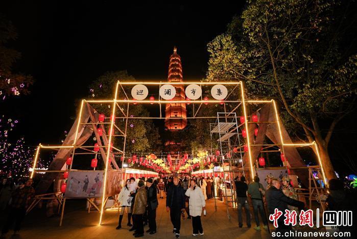 賞燈之余,2026臨邛古城生活節(jié)也為游客提供豐富休憩選擇。“迴瀾老茶館”內(nèi),游客可品清茶、看非遺活態(tài)演出!肮潘屑眳R聚邛崍本土民俗特產(chǎn)和創(chuàng)意文創(chuàng),滿(mǎn)滿(mǎn)煙火氣吸引游客駐足選購(gòu)。運(yùn)氣好,游客還能趕上草坪音樂(lè)會(huì),在國(guó)風(fēng)電子樂(lè)律動(dòng)中,觀(guān)賞無(wú)人機(jī)與古塔光影秀。