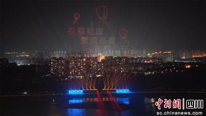 夜幕降臨,濱江公園區(qū)域成為歡樂的海洋。非遺技藝“打鐵花”驚艷亮相,鐵花飛濺如星河落岸,與火龍飛舞表演交相輝映;鳳凰、天馬造型飛行器凌空翱翔,靈動身姿勾勒出唯美畫面。隨后的無人機編隊表演,更是將新春氛圍推向高潮。800架無人機騰空而起、精準移動,在夜幕中呈現(xiàn)出一幅幅璀璨的光影畫卷——“祝福祖國繁榮昌盛國泰民安”“加快建設(shè)市域副中心”“山歌響起的地方資中歡迎您”。每一次的陣型變換,每一次的光影流轉(zhuǎn),都引來現(xiàn)場陣陣歡呼,快門聲、贊嘆聲此起彼伏。
