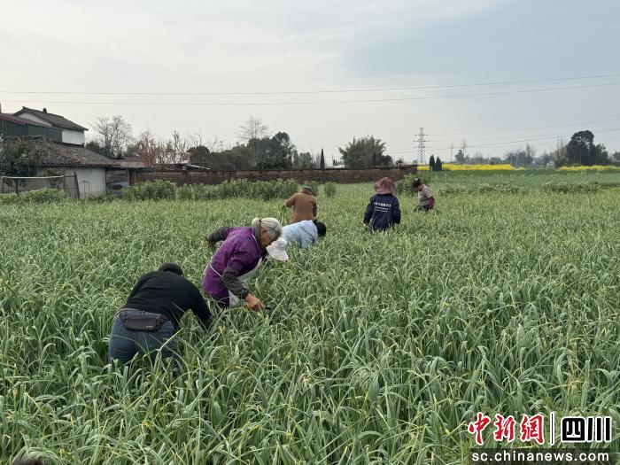 中新網(wǎng)四川新聞3月9日電 (劉姮 廖藝燦)眼下,正值蒜薹集中采收上市的黃金時節(jié)。什邡市洛水鎮(zhèn)家靈村一望無際的蒜田綠意盎然,飽滿脆嫩的蒜薹從蒜苗中抽出,長勢喜人。村民們穿梭在蒜田間,熟練地采收蒜薹,現(xiàn)場一片熱火朝天的景象。