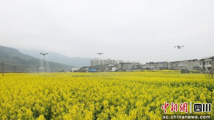 中新網(wǎng)四川新聞3月9日電 (楊文波)近段時(shí)間,川北地區(qū)的油菜正值盛花期,也是病蟲害防治的關(guān)鍵時(shí)期。廣元市劍閣縣搶抓農(nóng)時(shí),依托植保無人機(jī)開展“一噴多促”統(tǒng)防統(tǒng)治作業(yè),助力油菜穩(wěn)產(chǎn)增收。