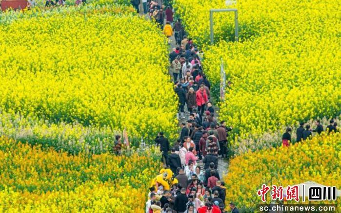 黃、粉、橙、紫……連日來,自貢市富順縣獅市鎮(zhèn)沿途的一片油菜花海五彩斑斕,猶如打翻了大自然的“調(diào)色板”,美不勝收,引來眾多游客踏青賞花,拍照打卡,樂享春光。