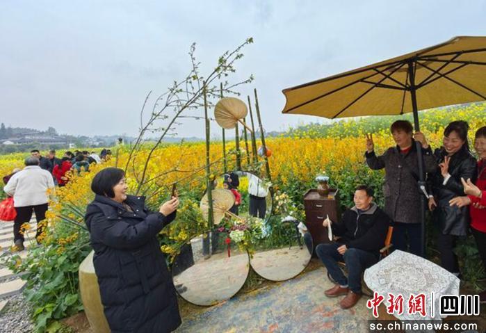 游客踏青賞花。富順融媒 供圖
