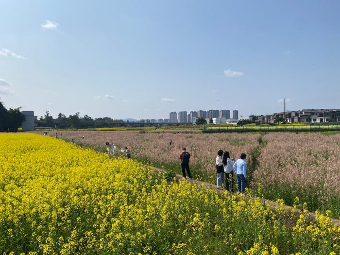 浩大的美麗花海還有油菜花。走進(jìn)瀘縣喻寺鎮(zhèn)譚壩村千畝油菜花基地,只見(jiàn)金黃花浪翻涌,與藍(lán)天白云、田園村落構(gòu)成絕美畫(huà)卷。新修的觀景棧道蜿蜒其間,游客們穿行于花海之中,或駐足拍照,定格這明媚春光,或閉目深呼吸,沉醉于這沁人心脾的芬芳。