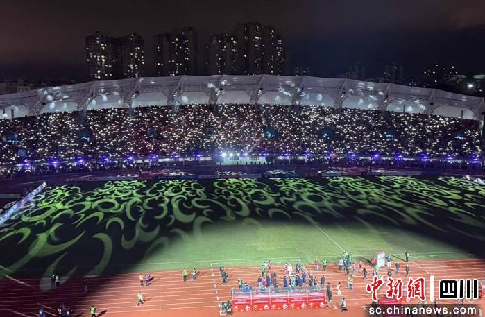 當(dāng)晚,自貢南湖體育中心燈火璀璨,2萬(wàn)余名球迷齊聚現(xiàn)場(chǎng)。賽前,川劇變臉、旗袍秀等特色展演暖場(chǎng),球迷拉歌聲此起彼伏,“自貢雄起”的口號(hào)響徹夜空。據(jù)悉,自貢燈城燊龍隊(duì)繼分區(qū)賽后再次擊敗對(duì)手,不僅收獲決賽階段“開(kāi)門(mén)紅”,還實(shí)現(xiàn)本賽季在自己的“魔鬼主場(chǎng)”對(duì)宜賓隊(duì)的“雙殺”。(自貢文旅 供圖)