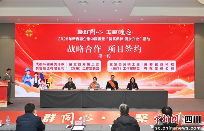 中新網(wǎng)四川新聞2月4日電 2月3日上午,“金群同心·工聚暖企——2026年新春惠企集中服務暨‘情系桑梓回鄉(xiāng)興業(yè)’”活動在金堂縣舉行。