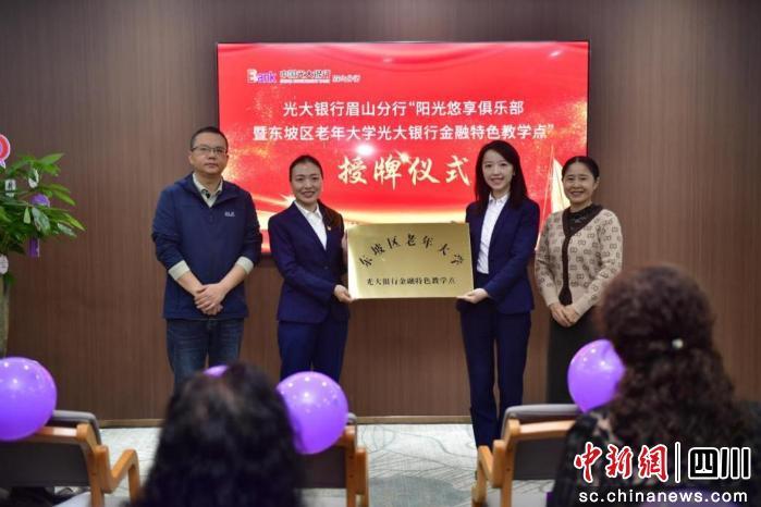 中新網(wǎng)四川新聞11月3日電 近日,中國光大銀行眉山分行“陽光悠享俱樂部暨東坡區(qū)老年大學(xué)光大銀行金融特色教學(xué)點(diǎn)”正式揭牌成立。眉山市東坡區(qū)老齡服務(wù)中心、東坡區(qū)老年大學(xué)、中國光大銀行成都分行零售金融部及眉山分行相關(guān)負(fù)責(zé)人參加授牌儀式。