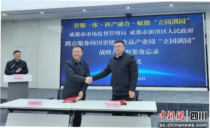 活動現(xiàn)場,成都市市場監(jiān)管局與成都新津區(qū)政府簽署《蹲點服務四川省健康食品產(chǎn)業(yè)園“立園滿園”戰(zhàn)略合作框架備忘錄》;成都市食品檢驗研究院、成都農(nóng)業(yè)科技職業(yè)學院與成都新津經(jīng)開區(qū)管委會簽署三方服務協(xié)議;成都市標準化研究院與成都新津經(jīng)開區(qū)管委會簽署兩方服務協(xié)議。此次簽約標志著“部門、區(qū)縣、院!薄叭弦弧倍c服務模式正式落地。