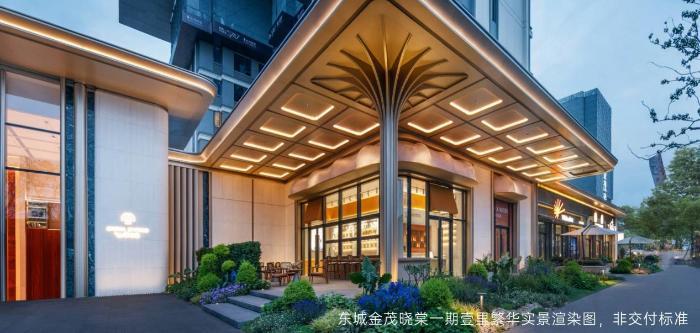 高顏美學(xué):以全景落地窗將城市天際線與公園綠意納入室內(nèi),光瀑般的建筑立面成為城市界面的美學(xué)坐標(biāo),奢感公區(qū)延續(xù)金茂豪宅基因,營造從歸家到入戶的儀式感。