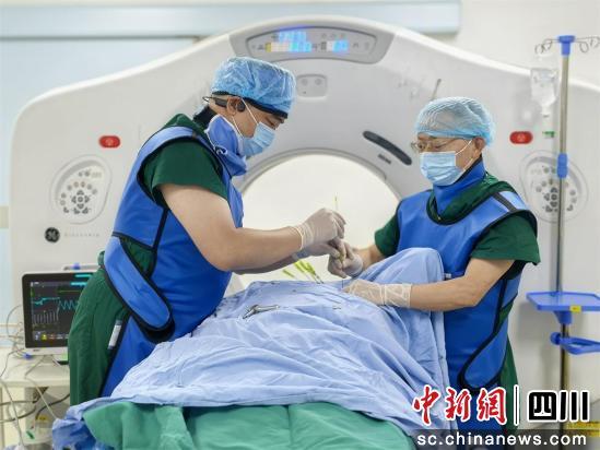 張正偉主任醫(yī)師、張盛主治醫(yī)師主刀對患者實施碘125粒子植入手術治療。成都市第五人民醫(yī)院供圖