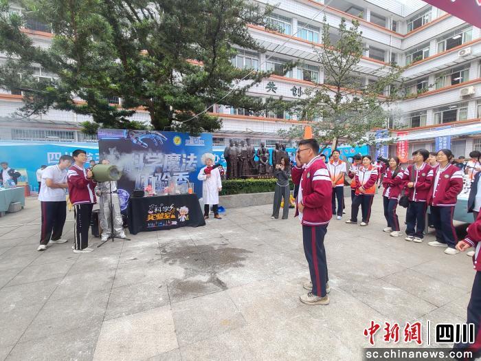 在科技成果展示區(qū),一位身著白色實(shí)驗(yàn)服、頭戴蓬松假發(fā)的“科學(xué)魔法師”成為全場焦點(diǎn)!翱,火焰在手中跳舞!”伴隨著一陣驚嘆,他右手高舉,一道絢麗的火焰瞬間燃起。圍觀的同學(xué)們睜大眼睛,臉上寫滿驚奇與探究。