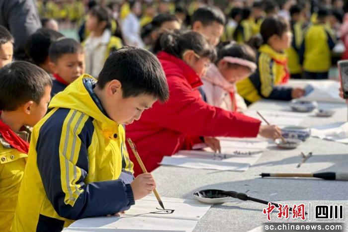 中新網(wǎng)四川新聞12月24日電(吳平華)23日,一場別開生面的“書法+思政+實踐研學”的“大思政課”在簡陽市射洪壩筒車小學成功舉行。本次活動由中共簡陽市委宣傳部、簡陽市教育局、簡陽市文聯(lián)主辦,簡陽市射洪壩筒車小學、簡陽市書法家協(xié)會承辦,通過開展“書法里的思政課”和書法傳承進校園系列活動,推動藝術課程與思政課形成協(xié)同效應,讓傳統(tǒng)文化和思政教育煥發(fā)時代新生機。