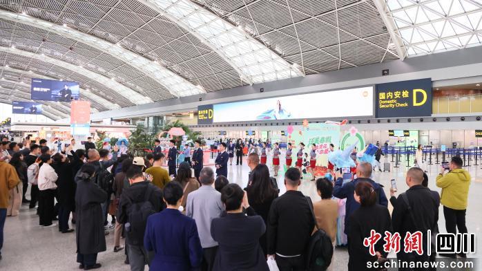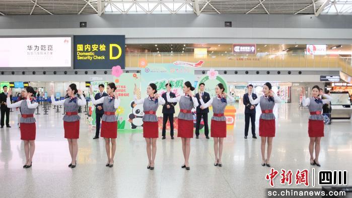 上午9時(shí),隨著動(dòng)感的節(jié)拍,“泛美號(hào)”春假航班主題活動(dòng)在雙流機(jī)場(chǎng)熱烈啟幕。泛美教育集團(tuán)旗下四川西南航空職業(yè)學(xué)院的學(xué)生們身著制服,不僅呈現(xiàn)了一場(chǎng)展現(xiàn)準(zhǔn)民航人卓越風(fēng)姿的職業(yè)走秀,更以優(yōu)雅俏皮的舞蹈表演驚艷全場(chǎng)。隨后,成都航空的乘務(wù)員們也加入其中,雙方共同以青春律動(dòng)點(diǎn)燃了現(xiàn)場(chǎng)的熱烈氛圍。這場(chǎng)突如其來的“驚喜”引得過往旅客紛紛駐足打卡!氨硌莘浅>,我正好要乘坐這趟航班去旅游,還沒出發(fā)就已經(jīng)很期待了!币晃患磳w往蘭州的旅客感嘆道。