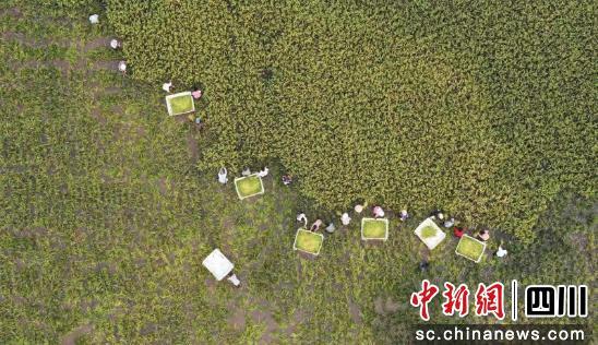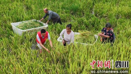 中新網(wǎng)四川新聞9月21日電(吳平華 張鳳莉)秋日的資陽市樂至縣中天鎮(zhèn),稻浪翻滾、稻香四溢。近日,在樂至縣樂旺滋稻漁專業(yè)合作社中天鎮(zhèn)基地的千畝稻蝦田里,近50名村民正彎腰揮鐮、推桶運(yùn)糧,幾名鎮(zhèn)黨員干部穿梭其間,一邊幫忙收割,一邊與村民嘮家常。歡聲笑語中,一場(chǎng)看似尋常的農(nóng)忙場(chǎng)景,卻蘊(yùn)含著生態(tài)農(nóng)業(yè)的智慧與基層治理的溫情。