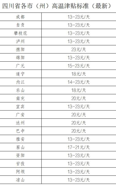 四川21個(gè)市(州)目前執(zhí)行的高溫津貼標(biāo)準(zhǔn)為——