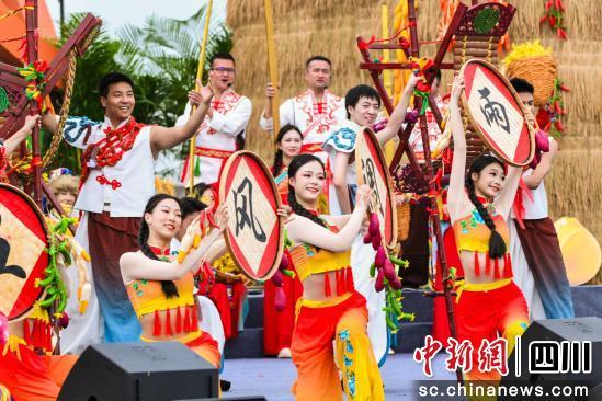 活動(dòng)現(xiàn)場,群眾慶祝豐收聯(lián)歡成為首個(gè)亮點(diǎn)。《農(nóng)產(chǎn)品大作戰(zhàn)》《我們村的高興事》等互動(dòng)情景式團(tuán)體表演輪番上演,攀枝花、德陽、宜賓、廣安、阿壩州五地農(nóng)民帶來的本土節(jié)目,讓“農(nóng)民的節(jié)日農(nóng)民樂”的氛圍愈發(fā)濃厚。舞蹈、小品、歌曲等豐富的演出形式,將豐收的喜悅傳遞給在場每一位觀眾。