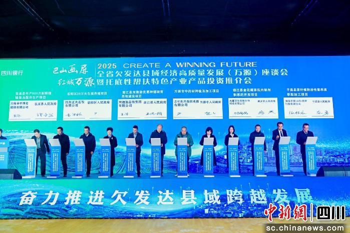座談會(huì)上,萬(wàn)源市、南江縣、平昌縣、蒼溪縣等與四川銀行、巨星農(nóng)牧等企業(yè)達(dá)成投資合作意向,并現(xiàn)場(chǎng)進(jìn)行三輪集中簽約。簽約項(xiàng)目涵蓋特色農(nóng)業(yè)、生物醫(yī)藥、智慧產(chǎn)業(yè)等多個(gè)重點(diǎn)領(lǐng)域。