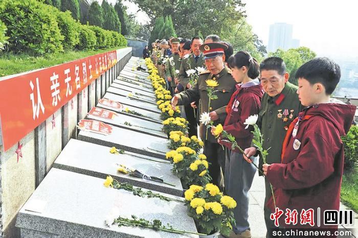 同時,四川注重用好巴山蜀水間的紅色富礦,弘揚英烈精神,賦能新時代思政教育。在全國系統(tǒng)提出烈士陵園“三園四化”建設理念,扎實推進烈士紀念設施“三年提升行動”,“一盤棋”推動烈士陵園保護范圍劃定和產(chǎn)權登記辦理、為烈士尋親等工作走在前列,打造“紀念碑下的思政課”、川渝兩地“行走的思政課”等紅色品牌。為讓戰(zhàn)爭年代犧牲的烈士“回家”,全省各級退役軍人事務部門開展“為烈士尋親行動”。
