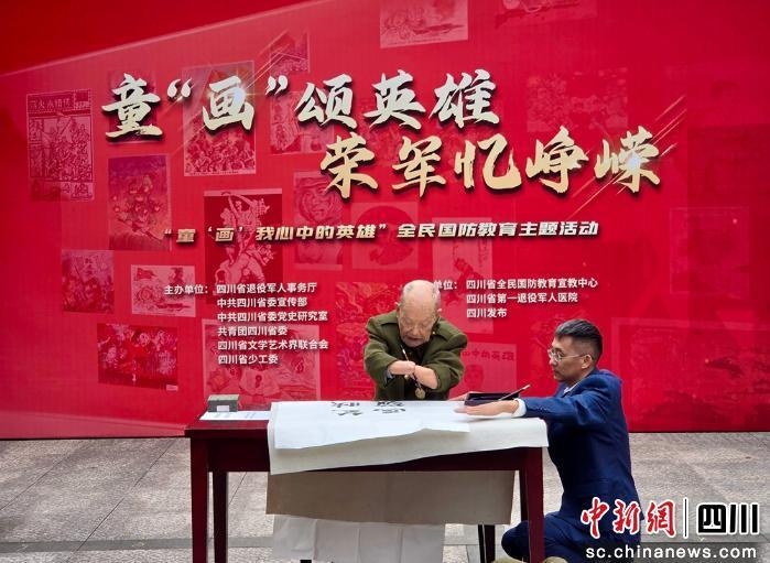 中新網四川新聞10月18日電。ㄓ浾摺⒅铱。10月18日,四川省退役軍人事務廳聯(lián)合省委宣傳部、省委黨史研究室、團省委、省文聯(lián)、省少工委等部門,在四川省革命傷殘軍人休養(yǎng)院舉行“童‘畫’頌英雄 榮軍憶崢嶸”——“童‘畫’我心中的英雄”全民國防教育主題活動。四川省革命傷殘軍人休養(yǎng)院老英雄、老戰(zhàn)士代表,主辦單位代表,“童‘畫’我心中的英雄”繪畫作品獲獎代表,以及成都新都區(qū)繁江小學學生代表等參加活動。