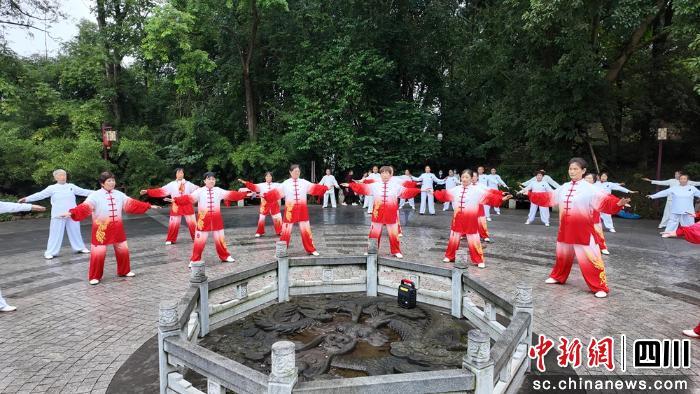 活動(dòng)現(xiàn)場熱鬧非凡,900余名老年朋友沿著景區(qū)標(biāo)志性的“九九長壽梯”拾級而上,途中經(jīng)過彭祖書院、采氣場等知名文化地標(biāo),最終成功登頂不老閣,將重陽登高的傳統(tǒng)民俗與健身運(yùn)動(dòng)完美結(jié)合。與此同時(shí),廣場上近百名健身氣功愛好者身著統(tǒng)一服飾,整齊展演八段錦,其動(dòng)作舒展從容、氣韻連貫流暢,引得現(xiàn)場圍觀群眾紛紛跟隨模仿學(xué)習(xí)。
