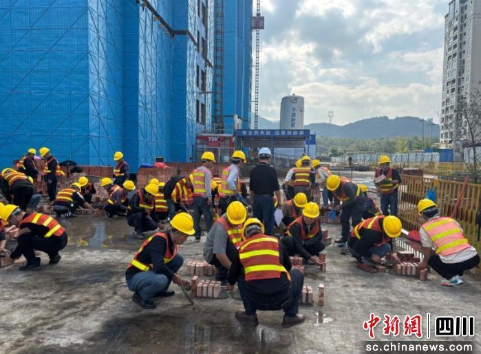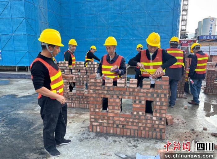 中新網四川新聞11月4日電(吳平華 何海翔)近日,在宜賓敘州區(qū)普和新區(qū)安置房工地的實訓現(xiàn)場,學員們分組輪換,按照考核圖紙,在專業(yè)技術人員“手把手”監(jiān)督指導下,認真進行磚墻砌筑,清脆而有節(jié)奏的砌磚刀敲擊聲此起彼伏,勾勒出一派勤學苦練的火熱場景。