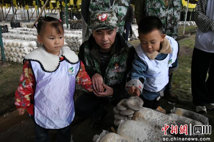 在蘑菇工坊環(huán)節(jié),老兵結合農(nóng)業(yè)生產(chǎn)實例,向孩子們講解玉米稈等農(nóng)業(yè)廢棄物如何轉化為蘑菇菌包原料,生動詮釋“變廢為寶”的環(huán)保智慧,讓節(jié)約與創(chuàng)新的種子在實踐中萌芽。隨后的生態(tài)輕徒步環(huán)節(jié),老兵們化身“自然引導員”,陪伴孩子們沿鄉(xiāng)間小路踏秋,還發(fā)起“環(huán)保小哪吒”行動,帶領大家清理沿途雜草、落葉,讓孩子們在分工協(xié)作中真切體會“勞動讓環(huán)境變美”的價值。
