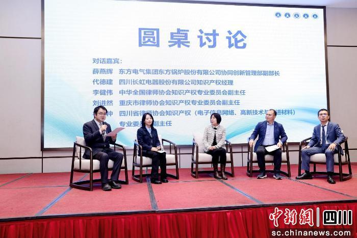 圓桌討論環(huán)節(jié),東方電氣集團(tuán)東方鍋爐股份有限公司協(xié)同創(chuàng)新管理部副部長薛燕輝、四川長虹電器股份有限公司知識產(chǎn)權(quán)經(jīng)理代德建、全國律協(xié)知專委副主任李健偉、重慶律協(xié)知專委副主任劉進(jìn)然、四川律協(xié)知專委副主任杜詩仲圍繞企業(yè)知識產(chǎn)權(quán)管理面臨的新挑戰(zhàn)、提升知識產(chǎn)權(quán)法律服務(wù)的價值、知識產(chǎn)權(quán)法律服務(wù)的區(qū)域協(xié)調(diào)發(fā)展等問題進(jìn)行了交流討論。