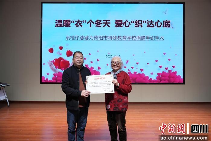 中新網(wǎng)四川新聞11月21日電 (姜強(qiáng))“小朋友就喜歡花花綠綠的顏色,穿在身上有活力!苯,83歲的袁桂珍婆婆懷揣著滿心牽掛,帶著新織的40件愛心毛衣走進(jìn)德陽市特殊教育學(xué)校,為這里的孩子們送上冬日里最實(shí)在的溫暖。七年來,這位銀發(fā)老人用一針一線織就245件暖衣,讓針腳間的溫度跨越寒冬,傳遞到困境兒童心中。
