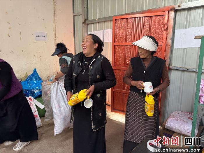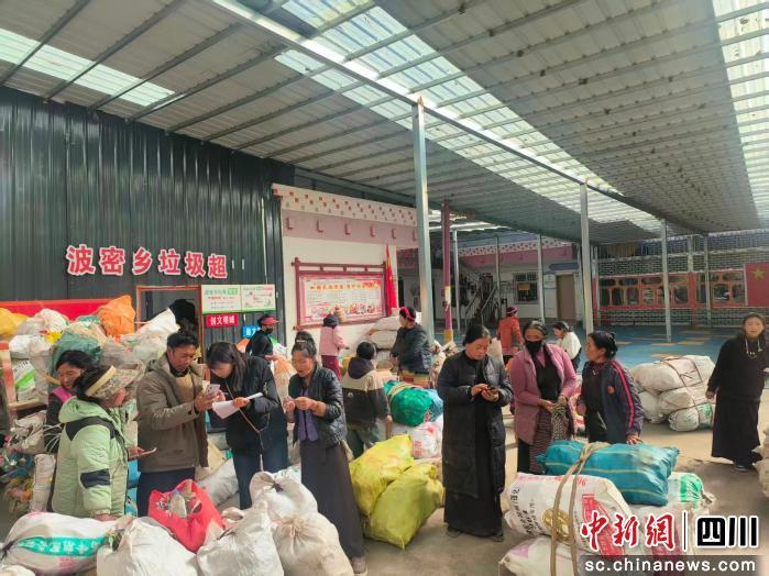 中新網(wǎng)四川新聞12月17日電 (劉忠俊 楊丹)12月中旬,甘孜州巴塘縣波密鄉(xiāng)波堆村一處掛著“垃圾超市”醒目招牌的倉(cāng)庫(kù)房前,村民向秋翁姆提著幾個(gè)鼓鼓囊囊的白色編織袋,和鄰居有說有笑地排隊(duì)。袋子里裝的不是糧食,也不是商品,而是從路邊、河岸、草場(chǎng)撿回來(lái)的各類廢棄物。經(jīng)村干部清點(diǎn)、登記、簽字后,向秋翁姆用累計(jì)的積分,高興地?fù)Q走了一塊香皂和一袋洗衣粉。