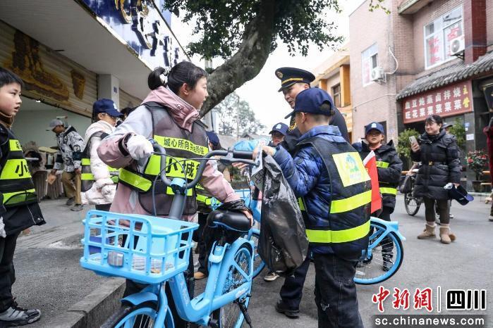 當(dāng)日,歷史韻味濃厚的雙流區(qū)彭鎮(zhèn)老街迎來了一群特別的“小訪客”。30多名中小學(xué)生穿上“小城管”背心、戴上帽子,在這里開啟體驗(yàn)旅程。