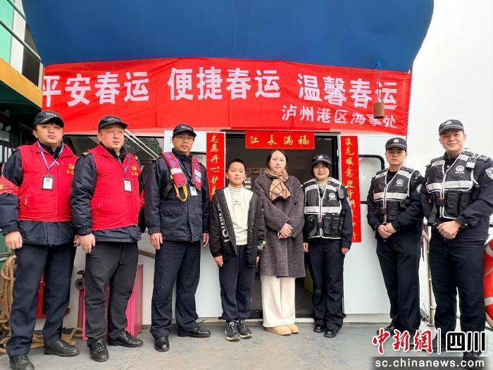 中新網(wǎng)四川新聞2月4日電 (陶一欣 廖茂吉)2月2日,2026年春運(yùn)第一天,長(zhǎng)航公安局瀘州分局民警早早來(lái)到長(zhǎng)江邊的彌陀渡口,登上熟悉的“彌陀號(hào)”渡船,將新春祝福與平安守護(hù)傳遞給返鄉(xiāng)群眾,讓年味與暖意一同伴隨群眾踏上團(tuán)圓歸途。