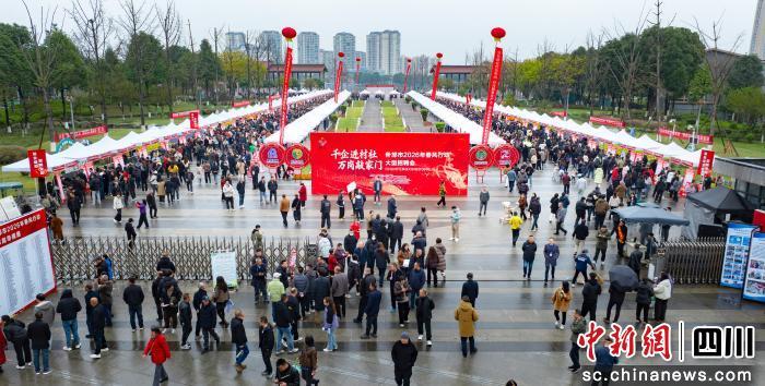 中新網(wǎng)四川新聞2月28日電 (鐘媛媛 張雪睿 廖藝燦)2月28日,“千企進(jìn)村社 萬崗敲家門”什邡市2026年春風(fēng)行動大型招聘會在什邡雍湖公園拉開帷幕。距招聘會開場還有半小時,不少企業(yè)展位前已排起長龍,返鄉(xiāng)務(wù)工者、應(yīng)屆畢業(yè)生,還有尋求就近就業(yè)的求職者們匯聚于此,共赴這場春天的“就業(yè)之約”。