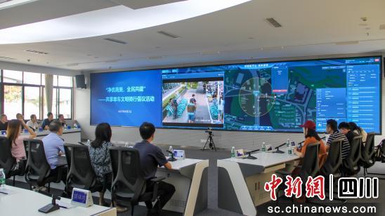 在成都市城管委數(shù)字化監(jiān)管中心指揮大廳內,“數(shù)字賦能,共護市容”綜合巡屏調度上演。指揮大廳大屏實時切換監(jiān)管平臺畫面與現(xiàn)場動態(tài),展示10個“一站一策”分類停放點位建設情況,并精準模擬、處置共享單車淤積和小廣告污染兩種典型市容秩序問題場景,展示數(shù)字化背景下,政企聯(lián)動通過平臺巡屏、企業(yè)包片、實時巡邏等舉措實現(xiàn)對突發(fā)情況、市民投訴等問題的快速處置,進一步推動市容秩序穩(wěn)定。
