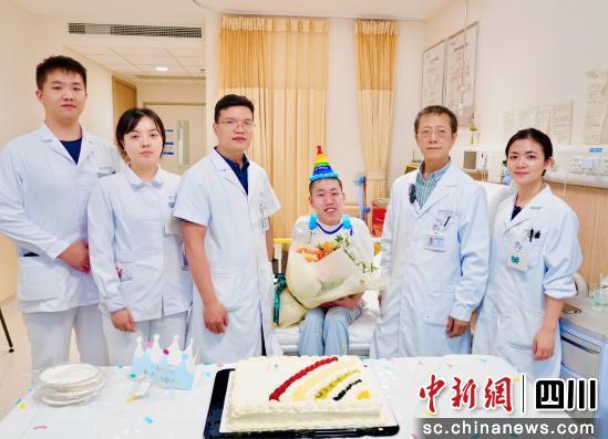 中新網(wǎng)四川新聞8月8日電(陳默) 5日下午,成都京東方醫(yī)院脊柱外科病房內(nèi)暖意融融。21歲的“折疊男孩”姜延琛在醫(yī)護(hù)人員攙扶下首次挺直脊梁端坐,眼前的生日蛋糕、彩色氣球與周圍笑臉,在他眼中格外清透——這是他歷經(jīng)四次手術(shù)后迎來的“新生時刻”,也是一場醫(yī)學(xué)攻堅、英雄鼓勵與患者堅韌共同書寫的生命奇跡。