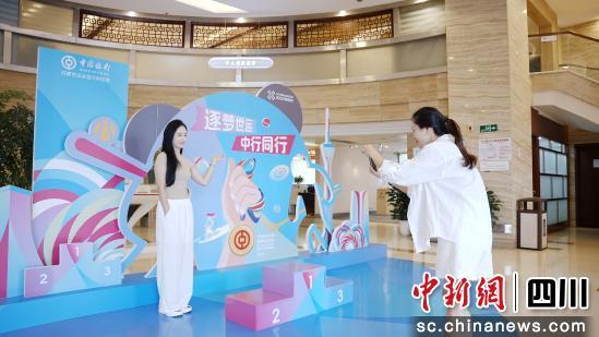 為響應(yīng)成都世運會工作部署,四川中行營業(yè)部創(chuàng)新性地打造了“世運文化驛站”:將業(yè)務(wù)等候區(qū)變?yōu)檫\動主題攝影角,讓市民在辦理金融業(yè)務(wù)的同時,也能零距離觸摸這場城市盛事。精心設(shè)計的打卡點,既為外籍人士提供了解成都活力的窗口,更讓本地市民在辦理業(yè)務(wù)間隙,沉浸式感受家門口的世運脈搏。