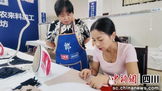 中新網(wǎng)四川新聞8月18日電(伍排勇 陳貞燕)“大家看,這里不能漏膠,也不能漏布,一定要把握好尺寸,寬了窄了都不行,熨燙的時候要貼著布料邊緣走,把膠壓緊、對齊,力道均勻了,成品才平整耐用!8月13日下午,汶川縣映秀鎮(zhèn)漁子溪村聯(lián)農(nóng)來料加工致富工坊里熱鬧非凡,來自該鎮(zhèn)一碗水村的巧手義烏手工坊技術(shù)骨干高富順正拿著布料、熨斗、剪刀,手把手地為當?shù)卮迕駛冄菔局鵁o痕內(nèi)褲的加工方法。