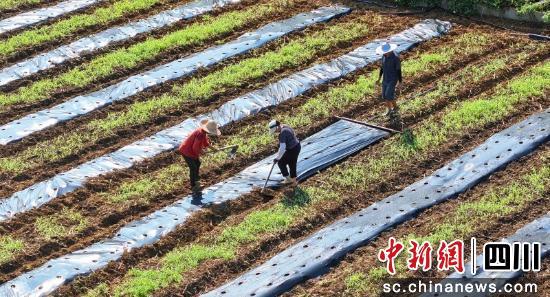 中新網(wǎng)四川新聞8月27日電(吳平華 羅景萍 陶坤)翻地、起壟、施肥、覆膜……近日,高縣慶嶺鎮(zhèn)的連片高標準農(nóng)田里一片繁忙,村民們正搶抓農(nóng)時,栽種貝貝南瓜。