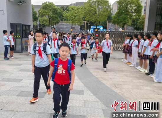 中新網(wǎng)四川新聞9月1日電 成都石室天府中學(xué)附屬小學(xué)于1日迎來(lái)新學(xué)期開學(xué)日。清晨,孩子們?cè)诟改赋錆M期待的目光中,帶著興奮的笑容重返校園,歡笑聲瞬間點(diǎn)亮了寧?kù)o已久的操場(chǎng)和教學(xué)樓,校園重新煥發(fā)生機(jī)與活力。