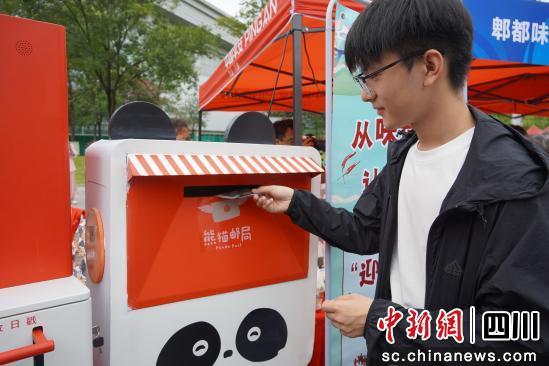 明信片傳遞著發(fā)件人的情感和祝福,今年郫都迎新“盲盒”活動想到了這一點,將郫都美景做成12張明信片,每月一主題,并附帶郵資,方便“萌新”們寄給自己的爸爸媽媽、爺爺奶奶和同學(xué)、朋友,表達內(nèi)心深處的情感。此次活動將熊貓郵筒搬到了現(xiàn)場,寫好當(dāng)場就可以寄。