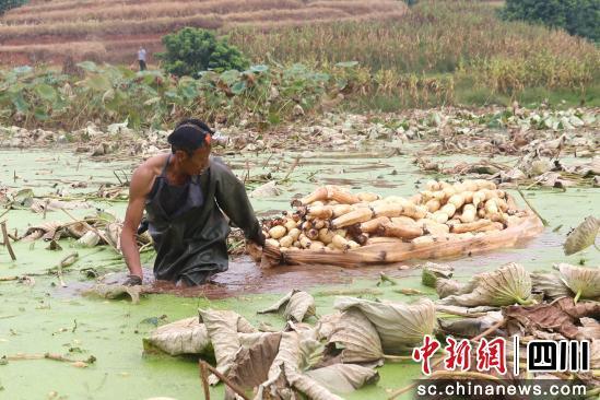 中新網(wǎng)四川新聞9月5日電 (羅興)9月4日,瀘州市龍馬潭區(qū)金龍鎮(zhèn)西壇村蓮藕基地里,連片的荷葉雖已漸顯微黃,水下的蓮藕飽滿結(jié)實,正式迎來成熟采收季。采藕工們身著防水服、腳踩淤泥,在荷塘中忙碌穿梭,彎腰、探泥、拔藕,動作嫻熟利落,一派豐收的熱鬧景象撲面而來。