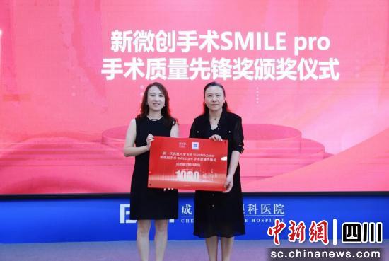 現(xiàn)場(chǎng),愛爾眼科四川省區(qū)副總院長周進(jìn)教授向大眾開展了眼健康知識(shí)普及,為近視患者解讀了這一前沿的近視矯正解決方案的技術(shù)優(yōu)勢(shì)。蔡司醫(yī)療眼科川藏業(yè)務(wù)負(fù)責(zé)人童小喬授予成都愛爾眼科醫(yī)院“新一代機(jī)器人全飛秒VISUMAX800新微創(chuàng)手術(shù)SMILE pro1000例手術(shù)質(zhì)量先鋒獎(jiǎng)”,肯定了愛爾眼科醫(yī)院在該領(lǐng)域的技術(shù)成就。