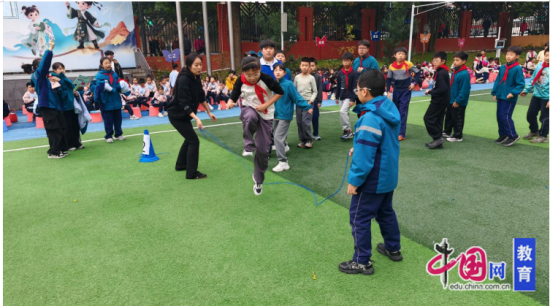 不同年級(jí)的特色賽事輪番上演:一年級(jí)的“爬行接力比賽”萌趣十足,小萌娃們手腳并用地向前沖刺,稚嫩的臉上寫(xiě)滿認(rèn)真,引得場(chǎng)邊觀眾陣陣歡笑;三至六年級(jí)的“跳長(zhǎng)繩”比賽則充滿默契,繩子在空中劃出優(yōu)美的弧線,隊(duì)員們魚(yú)貫而入、快速跳躍,每一次成功的接力都伴隨著歡呼;一至二年級(jí)的“春種秋收”比賽更是創(chuàng)意滿滿,小運(yùn)動(dòng)員們化身“小小農(nóng)夫”,在模擬的田地里完成“播種”與“收獲”的任務(wù),在運(yùn)動(dòng)中感受勞動(dòng)的快樂(lè)。